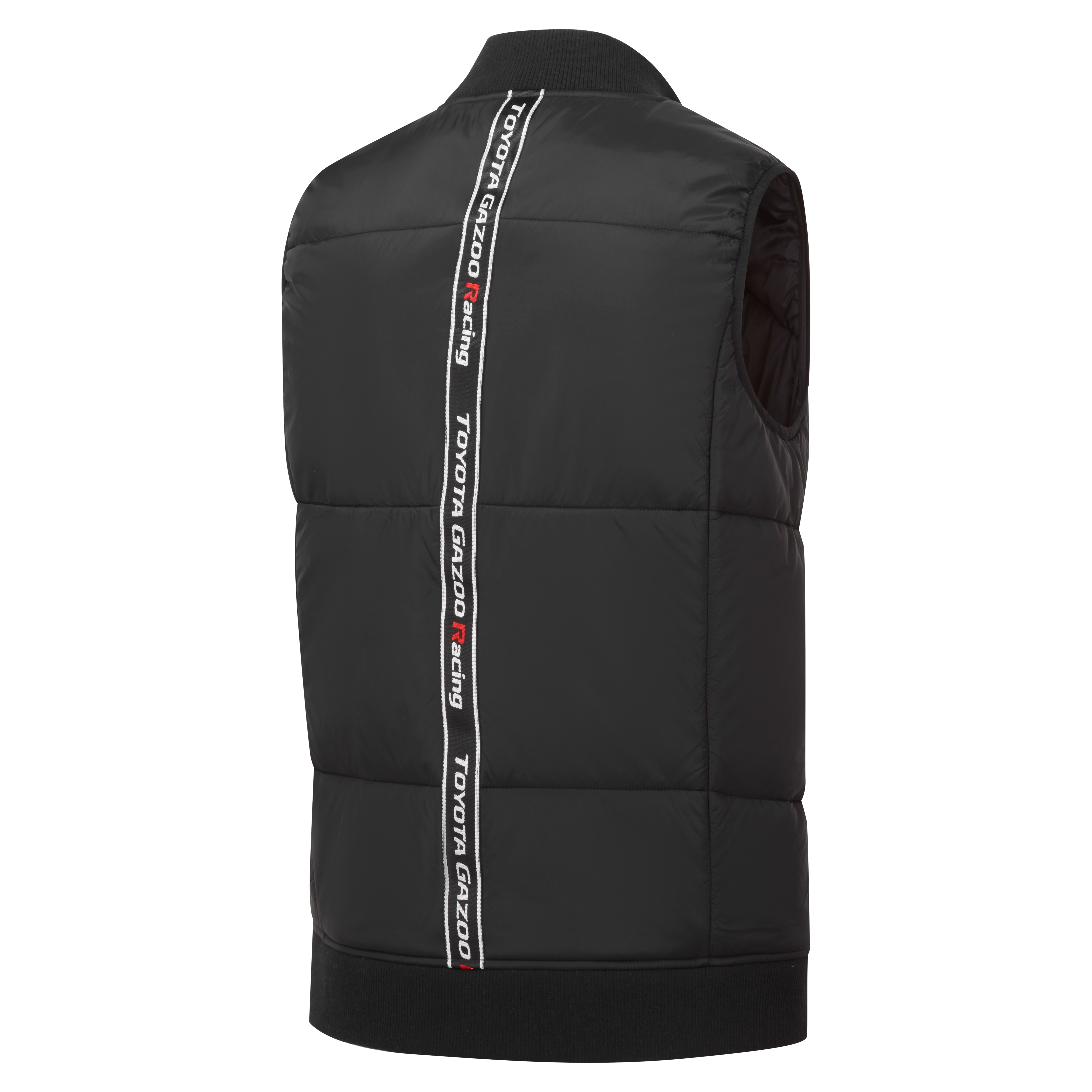 The TOYOTA GR gilet is characterised by several distinctive features.Firstly the striking angled quilting to the front followed by its rubberized GR logo, TOYOTA GAZOO Racing branded tape on the back, tied together with the ribbed cotton hem and branded metal zip pulls. This fashion inspired gilet enhances utility with the provision of two hidden zipped side pockets. A smart addition to any wardrobe, effortlessly complimenting jeans and a t-shirt.